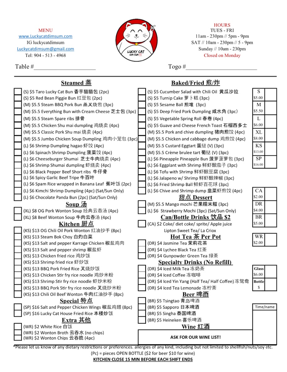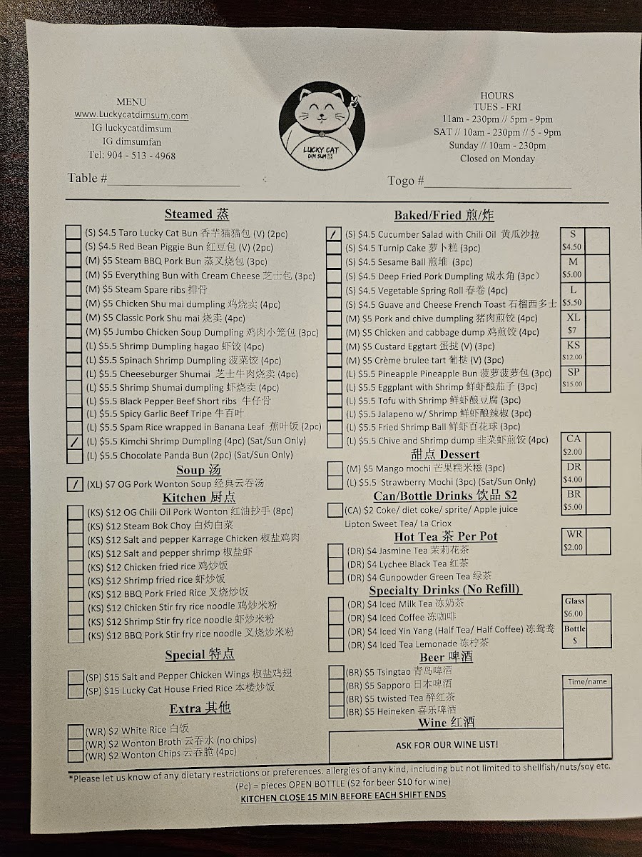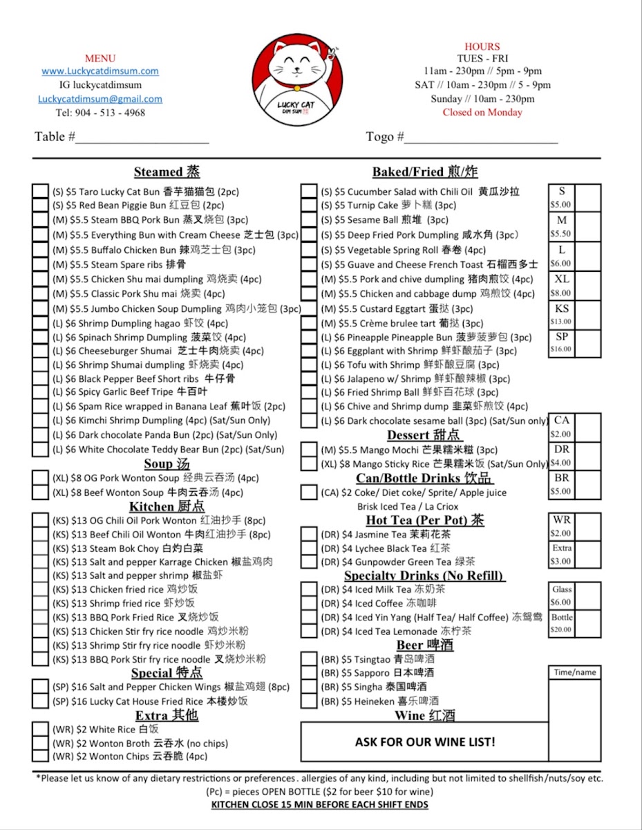 Contact Lucky Cat Dim Sum Restaurant today at +1 904-513-4968 for inquiries or to make a reservation. You won't regret stepping into this world of flavor and fun.